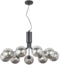 Die Pendelleuchte HONEY begeistert mit ihrem 9-flammigen Retro-Design in Schwarz und den eleganten Glaskugeln aus Rauchglas. Mit einem Durchmesser von 83,4 cm und einer Gesamthöhe von 161 cm wird sie zum Blickfang in jedem Raum. Die neun bernsteinfarbenen Glaskugeln sorgen für ein stimmungsvolles Licht und schaffen eine gemütliche Atmosphäre. Ideal für Esstische, Wohnzimmer oder offene Wohnbereiche, vereint sie klassischen Charme mit modernen Materialien.
