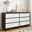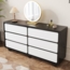 Diese elegante Kommode im modernen Schwarz-Weiß-Design vereint stilvolle Ästhetik mit praktischer Funktionalität. Mit großzügigen Abmessungen von 140 x 38 x 74,5 cm bietet sie umfangreichen Stauraum und sechs geräumige Schubladen mit abgerundeten Ecken. Die stabilen Metallfüße sorgen für Standfestigkeit, während integrierte Bodenschoner den Boden schützen. Ideal für Kleidung, Kosmetikartikel oder Accessoires, wird diese Kommode zum vielseitigen Begleiter in jedem Zuhause.