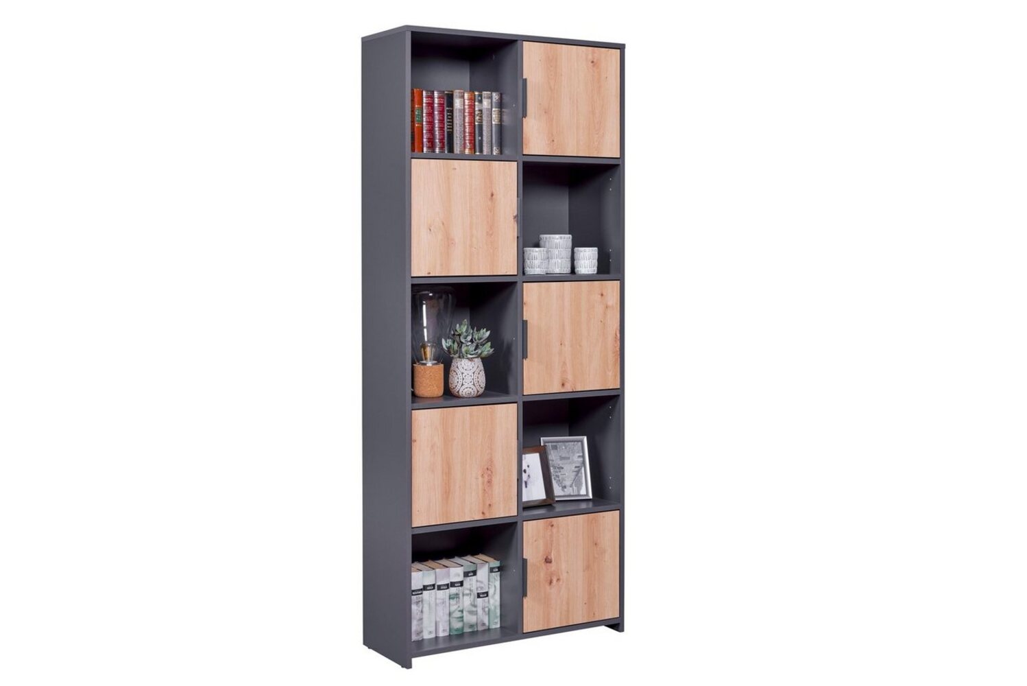 Bücherregal PEPETO 5T Regal mit 5 Türen Optik: Grau / Artisan Eiche