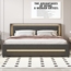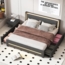 Polsterbett 180x200 mit LED-Beleuchtung, 4 Schubladen & gepolstertem Kopfteil, graues Doppelbett mit Stauraum