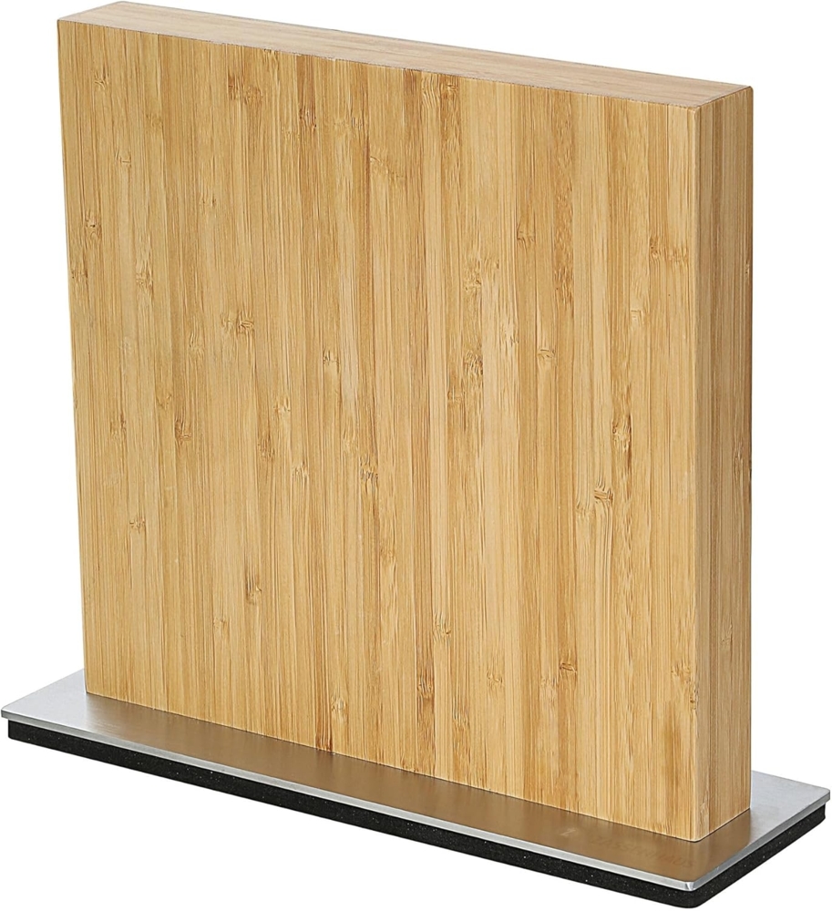 Simples Aufbewahren war gestern, jetzt wird schick präsentiert! Mit dem eleganten Magnet-Messerblock von ZASSENHAUS werden Ihre Messer nicht nur sicher verwahrt, sondern kommen auch stilvoll zur Geltung. Drei innenliegende, starke Magnetstreifen auf jeder Seite halten je nach Größe bis zu 10 Messer sicher fest. So ist für jeden Zweck das richtige Messer immer und sofort griffbereit. für bis zu 10 Messer mit einer Klingenlänge bis 23 cm beidseitig nutzbar standsichere, oberflächenschonende Basisplatte elegantes und zeitloses Design Bambus | Edelstahl rostfrei