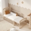 Praktisches und multifunktionales Babybett aus massivem Kiefernholz, ideal für die ersten Lebensjahre. Es kann als Beistellbett, eigenständiges Babybett oder verlängertes Kinderbett genutzt werden. Mit integriertem Wickeltisch und klappbarem Ablagerack bietet es zusätzliche Ablageflächen. Die robuste Konstruktion und die kinderfreundliche Lackierung sorgen für Sicherheit und Langlebigkeit.