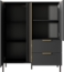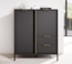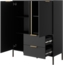 AX LIVING Modern Catanian 2D2S Highboard in Anthrazit ist die perfekte Kombination aus zeitloser Eleganz und moderner Funktionalität. Mit einer Breite von 103,3 cm, einer Höhe von 123,4 cm und einer Tiefe von 39,5 cm bietet dieses Highboard viel Stauraum hinter zwei Türen und in zwei Schubladen. Die goldenen Details und stabilen schwarzen Metallfüße setzen stilvolle Akzente und sorgen für einen sicheren Stand.