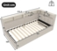 Das REDOM Schlafsofa ist ein multifunktionales Tagesbett mit einer Liegefläche von 90x200 cm, das über integrierte USB- und Typ-C-Anschlüsse sowie mehrfarbige LED-Streifenbeleuchtung verfügt. Der hydraulisch unterstützte Stauraum unter dem Bett bietet Platz für sperrige Gegenstände. Hergestellt aus hochwertigem MDF und strapazierfähigem Leinenbezug, vereint es Komfort und Funktionalität. Lieferung erfolgt ohne Matratze, jedoch kompatibel mit Standardmatratzen.