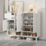 Praktischer Schuhschrank in modernem Design, ideal für Esszimmer, Wohnzimmer oder Küche. Mit den Maßen 120 x 35 x 99 cm bietet er ausreichend Stauraum durch 4 Türen und 1 Schublade sowie ein verstellbares Regal. Hergestellt aus robuster Spanplatte in Weiß, überzeugt er durch eine Tragkraft von 50 kg auf der Tischplatte und 20 kg in den Schubladen. Die integrierte Kippsicherung sorgt für zusätzliche Sicherheit.