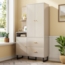 Diese elegante Kommode im Format 110 x 38 x 186 cm vereint Form und Funktion. Mit gepolsterten Stoffpaneelen in Beige und Grau, zwei geräumigen Schubladen und einer ausziehbaren Kleiderstange bietet sie praktischen Stauraum für Kleidung und Accessoires. Offene Fächer ermöglichen schnellen Zugriff auf wichtige Gegenstände, während gedämpfte Scharniere und ein Soft-Close-Mechanismus für leises Schließen sorgen. Die stabile Konstruktion mit Eisenfüßen und integriertem Kippschutz sorgt für Sicherheit und Langlebigkeit.