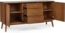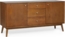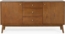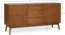 Das große Sideboard Lowry vereint stilvolles Design und Funktionalität. Gefertigt aus hochwertigem Kirscheschenholzfurnier, bietet es mit seinen 2 breiten Soft-Touch-Schranktüren und 3 ausziehbaren Schubladen großzügigen Stauraum. Die konischen Beine und die goldgerahmten Knöpfe verleihen dem Möbelstück einen eleganten Retro-Look, der in jedem Raum zum Blickfang wird.