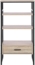 Praktisches Bücherregal im industriellen Stil mit drei offenen Fächern und einer Schublade. Das Regal in hellem Holzfarbton bietet viel Stauraum und ist ideal für verschiedene Nutzungsmöglichkeiten, sei es als Ablage im Eingangsbereich oder als dekorative Ergänzung in Ihrer Wohnung. Die robuste Melaminbeschichtung und das stabile Metallgestell sorgen für eine ansprechende Optik und Langlebigkeit.