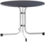 Der SIEGER Boulevard-Klapptisch mit einem Durchmesser von 100 cm und einer Höhe von 72 cm ist die ideale Lösung für Ihren Außenbereich. Das robuste Gestell aus graphitfarbenem Stahl-Flachovalrohr sorgt für Stabilität, während die wetterfeste Mecalit®-Pro Dekorplatte in Anthrazit eine ansprechende Optik bietet. Die praktische Klappfunktion ermöglicht eine einfache Handhabung und der Höhenausgleich garantiert einen stabilen Stand, auch auf unebenen Flächen.