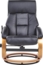 Komfortabler Massagestuhl FORCE mit Fußstütze in Schwarz aus Kunstleder. Genießen Sie entspannende Massagen mit 5 Programmen und 2 Intensitäten, unterstützt durch eine wohltuende Heizfunktion. Der Sessel bietet eine ergonomische, verstellbare Rückenlehne und breite Armlehnen für maximalen Komfort. Mit einer stabilen Konstruktion aus Holz und einer bequemen Polsterung ist dieser Massagestuhl ideal für entspannte Stunden.