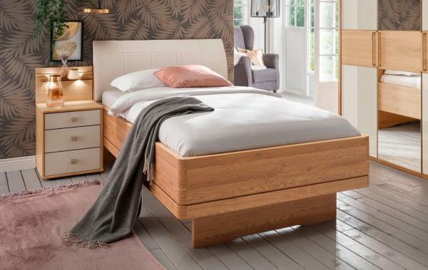 WIEMANN Bett Kiruna, Bettgestell, Bettrahmen, Eiche Nachbildung, Polsterkopfteil (4-fache Liegehöhenverstellung, MADE IN GERMANY), Polsterkopfteil aus Kunstleder, verschiedene Größen, in Komforthöhe Bild 1