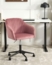 Moderner Bürostuhl aus elegantem Rosa Samtstoff, der Stil und Komfort vereint. Die bewegliche, gepolsterte Sitzfläche sorgt für Bequemlichkeit während langer Arbeitstage. Mit einer praktischen Gasdruckfeder ist die Sitzhöhe stufenlos einstellbar. Robuste Rollen ermöglichen eine mühelose Mobilität. Die edle Steppung verleiht jedem Raum ein besonderes Flair.