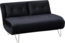 Eindrucksvolles 2-Sitzer Sofa aus Samtstoff in Schwarz, das mit einer praktischen Bettfunktion und Zierkissen überzeugt. Die breite, dicke Sitzfläche bietet hohen Komfort, während die gold bemalten Harpin Beine und der geschmeidige Samtbezug für eine stilvolle Optik sorgen. Mit einem Klick-Klack System verwandelt sich das Sofa schnell in einen gemütlichen Liegeplatz oder ein Bett für Übernachtungsgäste.