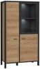 Die Wohnwand HIGH ROCK 4-tlg. mit Beleuchtung in Riviera Eiche Optik / Schwarz von Forte besticht durch ihre Großzügigkeit und vielseitige Kombinationsmöglichkeiten. Das Set besteht aus einem Highboard, Lowboard, Wandboard und einer Vitrine. Unterschiedliche Höhen und geschlossene sowie offene Fächer verleihen der Wohnwand Leichtigkeit. Das kontrastreiche Design mit schwarzem Rahmen und Fronten in Riviera Eiche Optik sorgt für einen modernen Look. Die verschiedenen Schränke bieten viel Stauraum und Platz für Deko-Objekte. Die Beleuchtung von Highboard und Vitrine setzt Ihre Lieblingsstücke gekonnt in Szene. Das Lowboard bietet nicht nur Platz für den Fernseher, sondern auch für zusätzliche Geräte. Die Wohnwand HIGH ROCK 4-tlg. ist aus beschichteter Spanplatte gefertigt und wird zerlegt geliefert.