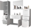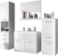 Das Badmöbel-Set Bella in der eleganten Farbe Weiß / Weiß Hochglanz bietet eine stilvolle und funktionale Lösung für Ihr Badezimmer. Es umfasst einen großen Hängeschrank, einen Waschbeckenschrank, einen kleinen Hängeschrank, einen Spiegel und ein Waschbecken aus Konglomerat. Alle Möbel sind aus hochwertigen Laminatplatten gefertigt und bieten ausreichend Stauraum.