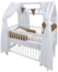 Unser Baby-Delux Komplettbett Hausbett 60x120 cm aus robustem Kiefernholz vereint Sicherheit, Komfort und stilvolles Design. Strahlend weiß lackiert, passt es harmonisch in jedes Kinderzimmer. Mit drei herausnehmbaren Schlupfsprossen und einem dreifach höhenverstellbaren Lattenrost fördert es die Selbstständigkeit Ihres Kindes. Das liebevoll gestaltete Bettwäsche-Set und die atmungsaktive Bettschlange aus Waffelpique schaffen eine gemütliche Wohlfühloase. Das Bett lässt sich einfach in ein Juniorbett umbauen und bietet langfristigen Komfort.
