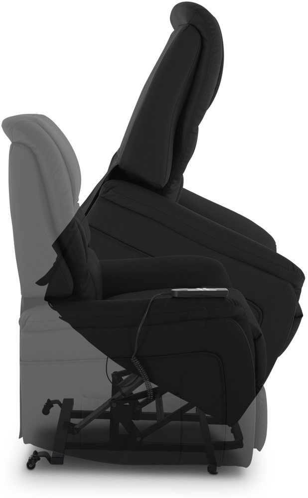 Raburg Fernsehsessel JAN in SEIDEN-SCHWARZ mit elektrischer Aufstehhilfe - Schlafsessel XXL, Taschenfederkern, Liege- & Relaxfunktion, Soft-Touch-Kunstleder, 2 kraftvolle Motoren + Fernbedienung