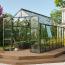 Das Vitavia Gewächshaus Olymp 11500 bietet mit seinen großzügigen Abmessungen von 257 x 448 cm und einer Höhe von 2,54 m ideale Bedingungen für das Pflanzenwachstum. Ausgestattet mit bruchstabilem, kristallklarem Sicherheitsglas (ESG) in 3 mm, sorgt es für optimalen Lichteinfall. Die Doppelflügeltür mit niedriger Türschwelle ermöglicht einen komfortablen Zugang, während die Kombination aus Dach- und Seitenfenstern eine hervorragende Belüftung gewährleistet.