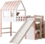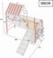 Dieses fantasievolle Kinderhochbett mit Rutsche und Stauraum in Rosa ist ein echtes Highlight im Kinderzimmer. Inspiriert von der bunten Welt einer Eisdiele, vereint es Schlaf-, Spiel- und Stauraumfunktionen in einem kompakten Möbelstück. Die stabile Konstruktion aus massivem Kiefernholz und MDF-Elementen sorgt für Sicherheit und Langlebigkeit. Mit einem 36 cm hohen Sicherheitsgeländer und einer Tragkraft von bis zu 120 kg ist es ideal für kleine Abenteurer.