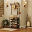 Der HOOBRO Garderobenständer mit Schuhablage und Schuhregal ist die perfekte Lösung, um Ihr Zuhause organisiert zu halten. Mit einer einfachen Montage dank der mitgelieferten Werkzeuge und Anleitung können Sie diesen vielseitigen Kleiderständer schnell aufbauen. Der Retro-Look in Vintagebraun und Schwarz verleiht Ihrem Raum eine elegante Note und passt harmonisch zu verschiedenen Einrichtungsstilen.