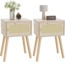 YMYNY Rattan Nachttisch 2er Set Beistelltisch Boho Massivholz 35x27x53 cm