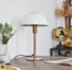 Moderne Tischleuchte aus Metall in Weiß und Messingfarben, ideal für Schlafzimmer und Wohnzimmer. Mit einem Durchmesser von 20 cm und einer Höhe von 35 cm bietet diese runde Nachttischlampe eine stilvolle Beleuchtung. Sie verfügt über einen praktischen An-/Ausschalter am Kabel und ist mit einer E14-Fassung ausgestattet. Bitte beachten Sie, dass kein Leuchtmittel im Lieferumfang enthalten ist.
