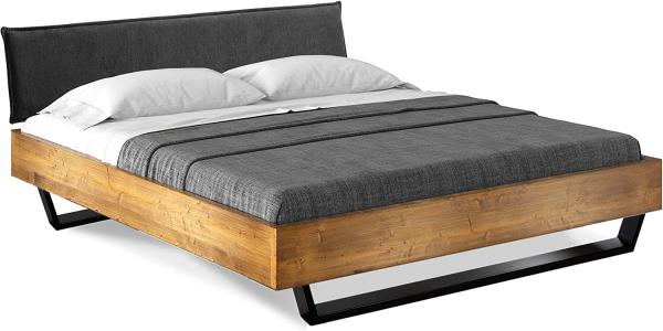 Möbel-Eins CURBY Kufenbett mit Polster-Kopfteil, Material Massivholz, rustikale Altholzoptik, Fichte, Kufen schwarz vintage 200x200 cm Stoff Anthrazit ohne Steppung Bild 1
