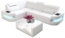 Schlicht und elegant: Das Ecksofa Como bringt durch seine Formen einen modischen Hingucker in Ihr Wohnzimmer. Die verstellbaren Kopfstützen sorgen für einen perfekten Sitzkomfort und lassen Sie bequem entspannen. Durch die integrierte Schlaf Funktion können es sich Ihre Gäste auch ohne Probleme über Nacht gemütlich machen. Dabei helfen könnte ebenfalls ein optionaler USB Anschluss in der Armlehne sowie eine LED Leselampe, womit Sie auch im Dunkeln gemütlich auf der Couch Ihr Buch lesen können. Die LED Beleuchtung an den Seiten leuchtet je nach Einstellung in Ihrer Lieblingsfarbe und kann ganz einfach per Fernbedienung bedient werden.Den Bezugstoff bieten wir in 3 verschiedenen Lederarten und 4 Variationen an. Das Kunstleder Premium , einen Mix aus Kunst- und Echtleder, Echtleder Premium und Büffelleder Premium.