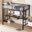 Dieses moderne Metall Hochbett mit den Maßen 90x200 cm bietet eine platzsparende Lösung für Jugendzimmer und kleine Räume. Es kombiniert einen stabilen Stahlrahmen mit einem integrierten Schreibtisch, zwei Regalen und einer Tastaturablage. Die umlaufenden Schutzgeländer und die sichere Leiter gewährleisten ein sicheres Schlafgefühl. Mit einem minimalistischen schwarzen Design fügt es sich harmonisch in verschiedene Einrichtungsstile ein.