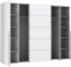 Dieser geräumige Kleiderschrank ist ein funktionales Möbelstück, das jeder nützlich finden wird. Er wird gut in einem Schlafzimmer oder Ankleidezimmer funktionieren. Das wunderschöne, ruhige Weiß-Dekor passt zu anderen Möbeln und Accessoires. Rückwand aus HDF-Platte, Die Griffe sind aus Kunststoff mit einer Oberfläche in Aluminium-Optik, Dieser Kleiderschrank ist ein perfekter Ort, um eine große Anzahl von Kleidungsstücken sowohl zum Aufhängen als auch zum Stapeln aufzubewahren, Der Kleiderschrank verfügt über zehn geräumige Regale und zwei Stangen, Verwendeter Türtyp: Schiebe- und Drehtüren