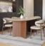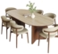 Die zarte Maserung und die feine Textur erinnern an mediterrane Landschaften und verleihen jedem Raum eine warme, einladende Atmosphäre. Getragen wird die Platte von massiven Tischbeinen aus furniertem Mangoholz – ein Material, das für seine Beständigkeit und Natürlichkeit geschätzt wird. Die gerade Linienführung der Beine unterstreicht den modernen Charakter und sorgt gleichzeitig für eine solide Standfestigkeit. Passend dazu präsentieren sich die Stühle als stilvolle Begleiter. Ihr Gestell aus Eschenholz setzt den natürlichen Charakter des Tisches fort, während die sanft geschwungenen Lehnen subtil an skandinavisches Design erinnern. Die sanfte Farbgebung des Stoffes lässt sich mühelos mit verschiedensten Einrichtungsstilen kombinieren – ob minimalistisch, modern oder klassisch. Gemeinsam bilden Tisch und Stühle einen Ort der Begegnung, der Genuss und Geselligkeit zelebriert. Ob für ausgedehnte Familienessen, inspirierende Gespräche oder gesellige Abende mit Freunden – dieses Ensemble ist weit mehr als nur Möbelstück. Es ist eine Einladung zum Verweilen, zum Innehalten und zum bewussten Erleben von Gemeinschaft.