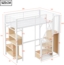 - Material: Metallrahmen und Holzplatten mit weißer Oberfläche