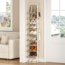 Dieses schmale Schuhregal mit 10 Ablagen bietet eine platzsparende Lösung für Ihre Schuhaufbewahrung. Mit den Maßen 32,8 x 32,8 x 183 cm nutzt es den vertikalen Raum optimal und ist ideal für Flure, Eingangsbereiche oder Schlafzimmer. Die verstellbaren Regale ermöglichen eine flexible Anpassung an verschiedene Schuhgrößen. Zusätzlich bietet das Regal zwei seitliche Haken für Schlüssel und andere Gegenstände. Der stabile Stahlrohrrahmen und die hochwertigen Materialien garantieren Langlebigkeit.