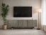 Entdecken Sie den stilvollen TV-Unterschrank aus Akazie Massivholz in Smoked Grey. Mit seinen Abmessungen von 160 x 56 x 46 cm bietet er ausreichend Platz für Fernseher bis zu 70 Zoll. Die drei Türen mit wellenförmigem Muster und die ausdrucksstarke Holzmaserung machen ihn zu einem echten Blickfang. Die integrierten Griffmulden und höhenverstellbaren Noppen sorgen für eine einfache Handhabung und Anpassung an den Untergrund.