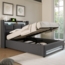 Polsterbett 90x200 cm mit LED-Beleuchtung & USB-Anschluss,Vintage-Leinenoptik,Stauraum unter dem Lattenrost,Grau Bild 1
