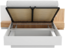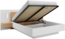 Vente-unique Bett mit Bettkasten und Nachttischen in Weiß und Holzfarben. Dieses Bett bietet eine Liegefläche von 160x200 cm und ist mit zwei Schubladen sowie einer integrierten LED-Beleuchtung ausgestattet. Der Bettrahmen aus melaminbeschichtetem Holzspan sorgt für eine robuste und pflegeleichte Oberfläche. Die Schubladen sind mit einem Push-to-Open-System ausgestattet, was eine einfache Handhabung ermöglicht. Das Bett ist für zwei Personen geeignet und wird als Selbstaufbau-Produkt geliefert.
