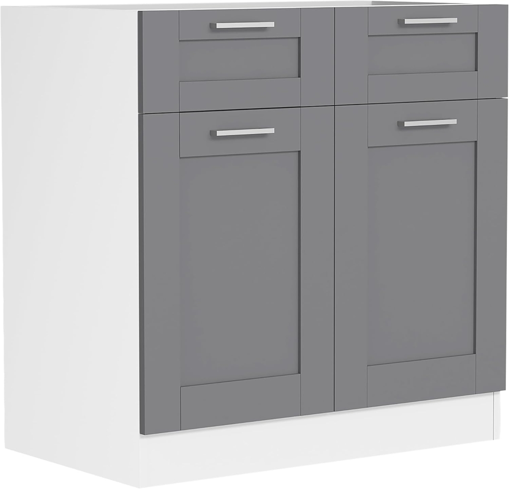 VCM Küchenmöbel Unterschrank Colura 920542 Weiß / Anthrazit H. 82 x B. 80 x T. 46 cm
