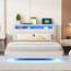 Polsterbett 140x200 cm aus Leinen mit LED-Beleuchtung und USB-Anschluss – klappbares Kopfteil mit Stauraum Bild 1