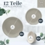 Traumhaftes Steingut Geschirrset für 4 Personen im skandinavischen Design. Dieses 12-teilige Set aus hochwertigem, langlebigem Steingut überzeugt durch eine elegante Farbgestaltung und dezente Riffelstruktur. Es ist spülmaschinenfest und mikrowellengeeignet, ideal für den täglichen Gebrauch. Mit 4 großen Tellern, 4 kleinen Tellern, 4 Schüsseln und 6 tiefen Tellern ist es vollständig ausgestattet für stilvolle Mahlzeiten.