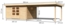 Seitliches Anbaudach naturbelassen mit 440 cm Breite über die gesamte Haustiefe, als Stauraum/Unterstand oder überdachter Sitzplatz. Hinten und seitlich geschlossen mit stabilen Wänden, naturbelassen.