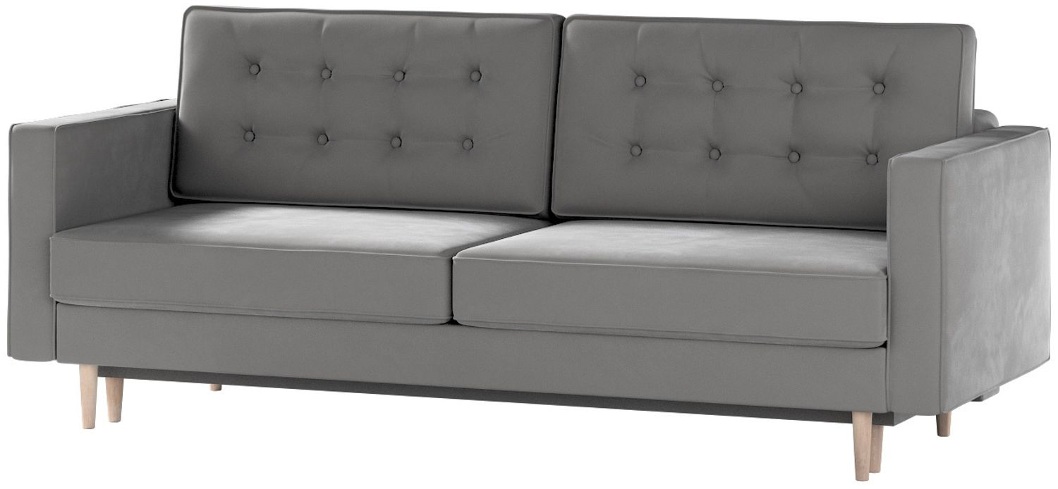 Dekoria Ausklappbares Sofa Svein vereint elegantes skandinavisches Design mit praktischer Schlaffunktion. Die klaren Linien und Holzbeine verleihen dem Sofa Stil, während die eleganten Steppungen an den Rückenkissen für zusätzlichen Charme sorgen. Mit einer Liegefläche von 140 x 200 cm und einem integrierten Bettkasten ist es ideal für minimalistische Innenräume und bietet sowohl tagsüber als auch nachts hohen Komfort.