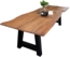 Exklusiver Esszimmertisch Polly, 300 x 100 cm, schwarze Resin-Adern, Akazienholz massiv + nussbaumfarben, A-Metallgestell Schwarz, Tischplatte 26 mm : Mit Epoxidharz – Die Tischplatte mit mehreren kleinen Epoxidharz-Adern zeichnet sich durch Eleganz und Schönheit aus. Die Maserungen und Farbnuancen sind so einzigartig, dass jeder Epoxidharz-Tisch ein absolutes Unikat ist. Kein Esszimmertisch gleicht dem anderen. Pflegeleicht – Die Oberfläche lässt sich leicht reinigen und pflegen. Verschmutzungen können mit einem mäßig feuchten Tuch problemlos entfernt werden. Regelmäßige Pflege erhält die natürliche Frische und die edle Ausstrahlung des Möbelstücks. Vielseitig einsetzbar – Der Küchentisch strahlt mit seiner rustikalen Art eine Gemütlichkeit aus, die Ihre Essecke warm und wohnlich wirken lässt. Durch die edlen Exposidharz-Adern entsteht eine edle Note in Ihrem Esszimmer. Der Tisch mit stilgerechten Stühlen kombiniert, kreiert ein großartiges Ensemble für Ihr Zuhause. Edles Design – Für unseren Esstisch wird hochwertiges Akazienholz mit schwarzem Epoxidharz verbunden. Die ausgefallenen Strukturen des Holzes kommen hierbei besonders gut zum Vorschein und verleihen Ihrem Zuhause einen lebendigen und trendigen Charakter. Natur Pur – Besonderes Highlight des Esszimmertisches sind die Tischkanten, die den natürlichen Formen eines Baumes entsprechen und direkt aus dem Baumstamm geschnitten wurden. Maßangaben: : Gesamtlänge: 300 cm Gesamtbreite: ca. 100 cm Gesamthöhe: ca. 77 cm Materialstärke: ca. 26 mm: :.Der Artikel wird zerlegt geliefert, mit ausführlicher Aufbauanleitung und Montagematerial.