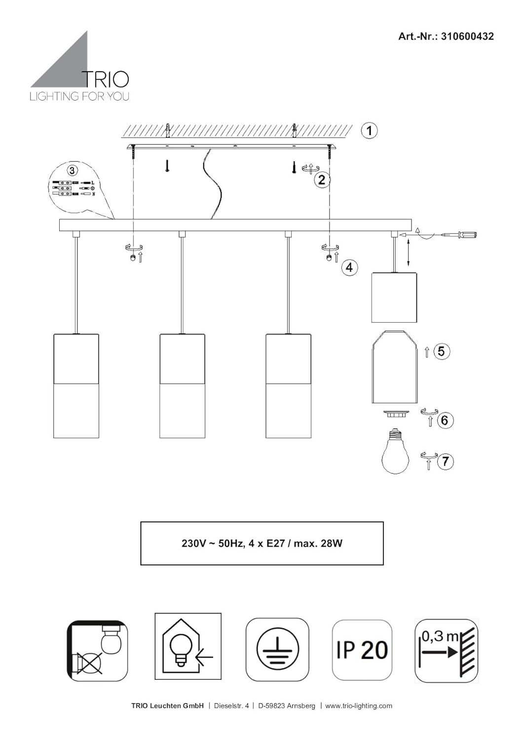 Für den Betrieb sind 4 Leuchtmittel für Fassung E27 erforderlich