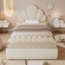 Einzelbett Polsterbett, Kopfteil mit geschwungenen Blütenblättern, einfach, stilvoll und bequem, Modernes Bettgestell, Samt, Beige 90x200cm Elegantes Blütenkopfteil: Das geschwungene Kopfteil in Form von Blütenblättern verleiht dem Bett eine romantische und verspielte Note – ideal für stilvolle Kinder- oder Jugendzimmer. Komfortabler Samtbezug: Der weiche Samtstoff sorgt für eine angenehme Haptik und verleiht dem Bett ein luxuriöses Erscheinungsbild. Modernes, schlichtes Design: Die klare Linienführung und das elegante Beige machen das Bett vielseitig kombinierbar mit verschiedenen Einrichtungsstilen. Rutschfestes Bodendesign: Anti-Rutsch-Elemente an der Unterseite erhöhen die Stabilität und verhindern das Verrutschen auf glatten Böden. Stabile Konstruktion: Das moderne Bettgestell bietet dank robuster Materialien zuverlässige Unterstützung und lange Haltbarkeit. Einfach zu installieren: Ausführliche Anleitungen und komplette Teile können Ihnen helfen, die Montage abzuschließen. Das Vergnügen der Installation lässt Sie das Bett noch mehr genießen. Gewicht & Maße Gesamtgröße: 205x137.5x103cm Gesamtgewicht: 27KG Passende Matratzen (Matratze nicht enthalten.): 90x200cm(Dicke der Matratze≤20cm) Tragfähigkeit: Bett: 150KG Merkmale Produktname: Polsterbett Farbe: Beige Stoff: Samt Lattenmaterial: Sperrholz Montageverfahren: selbst installieren FSC-Zertifikat: Ja Paketnummer: 1 Hinweis: Alle Angaben sind ca.-Maße. Bei Fragen kontaktieren Sie uns gerne per E-Mail. Wir wünschen Ihnen viel Freude mit Ihrem neuen Produkt! Denken Sie daran: Ihre Zufriedenheit treibt uns jeden Tag an.