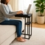 Praktischer Beistelltisch in C-Form mit zwei Ablagen für Snacks, Getränke und mehr. Die Gesamtmaße betragen ca. 60 x 40 x 30 cm. Die obere Ablage hat eine Traglast von ca. 35 kg, während die untere Ablage bis zu ca. 3 kg trägt. Der Tisch besteht aus robustem MDF und Eisen und ist ideal zum Unterschieben am Sofa oder Bett.