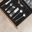 Ausziehbarer Besteckkasten aus Bambus, ideal zum Ordnen von Messern, Gabeln, Löffeln und weiteren Küchenutensilien. Mit 5 Haupt- und 2 ausziehbaren Fächern bietet dieser Bestecktrenner ausreichend Platz und passt in kleine sowie größere Küchenschubladen. Der robuste Kasten aus natürlichem Bambus in elegantem Schwarz sorgt für Ordnung und Übersichtlichkeit in Ihrer Küche.