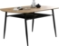 Der Esstisch mit den Maßen 180 x 90 cm vereint modernes Design und Funktionalität. Die stabile Tischplatte aus 18 mm starkem MDF in Eichenoptik ist pflegeleicht und wird von einem pulverbeschichteten Metallgestell in Schwarz getragen. Unter der Tischplatte befindet sich eine praktische Ablagefläche aus Polyrattan, die zusätzlichen Stauraum bietet. Der Tisch bietet Platz für ca. vier bis sechs Personen und ist ideal für Ihr Esszimmer.