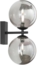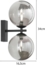 Außergewöhnliche LED Wandlampe in Schwarz mit Glaskugeln aus Rauchglas. Diese 2-flammige Up and Down Kugelleuchte hat eine Höhe von 23,3 cm und eine Tiefe von 16,5 cm. Jede Glaskugel hat einen Durchmesser von 10 cm. Der schwarze Metallkorpus sorgt für eine stilvolle Atmosphäre und die Leuchte ist über einen Kippschalter am Leuchtkörper bequem zu bedienen. Ideal für Flure, Dielen, Wohnzimmer und Schlafzimmer.