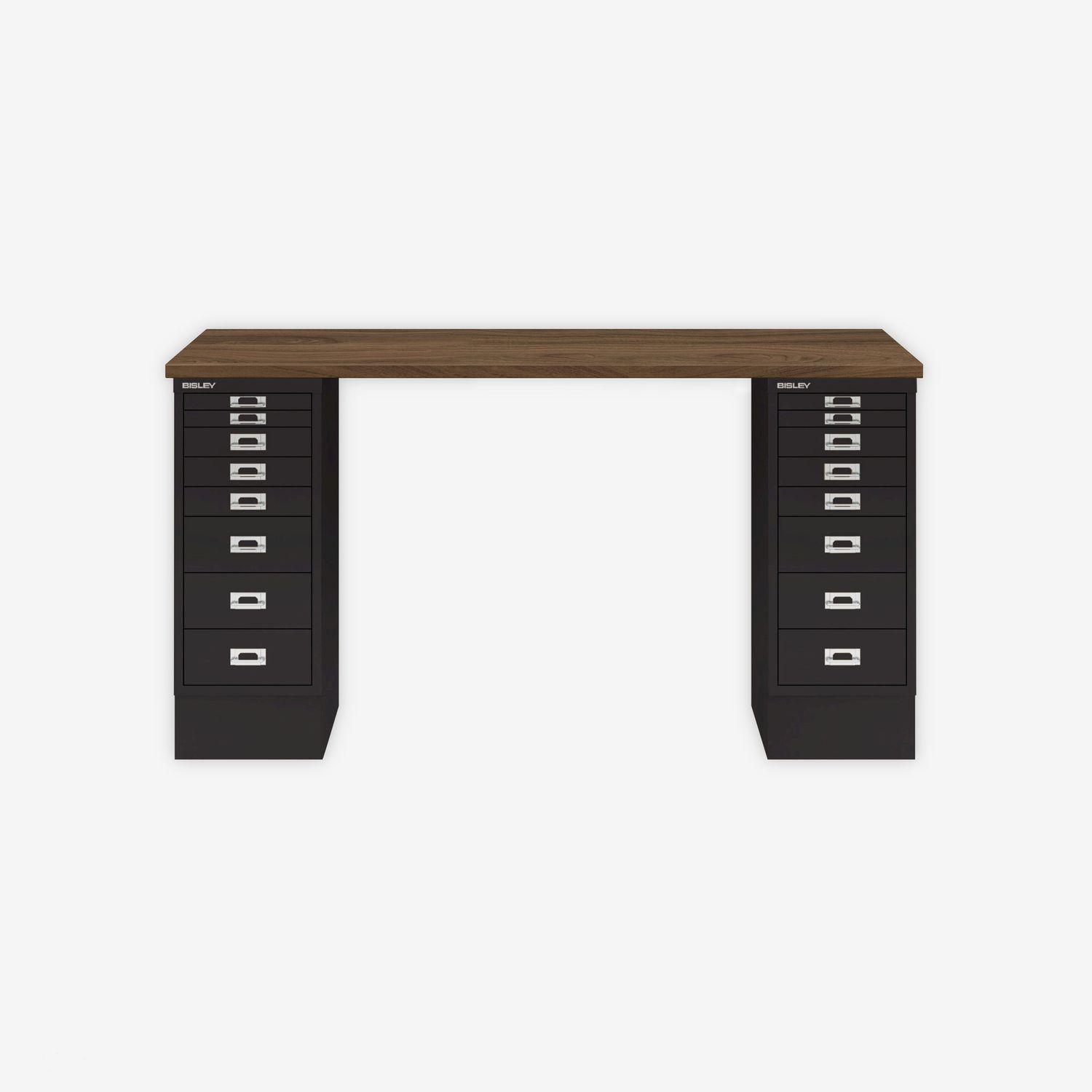 MultiDesk, 2 MultiDrawer mit 8 Schüben, Dekor Nussbaum, Farbe Schwarz, Maße: H 740 x B 1400 x T 600 mm