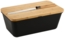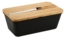 KESPER Brotbox schwarz mit Schneidebrett und Messer. Hält Brot und Brötchen länger frisch. Maße der Brotbox (LxBxH): 34,8 x 20 x 15,5 cm. Maße Schneidebrett: 34,8 x 20 x 1,5 cm. Messer: Länge 33 cm. Material: Box aus Kunststoff (PP) / Deckel/Schneidbrett aus FSC®-zertifiziertem Bambus (Lizenznummer FSC-C014021).